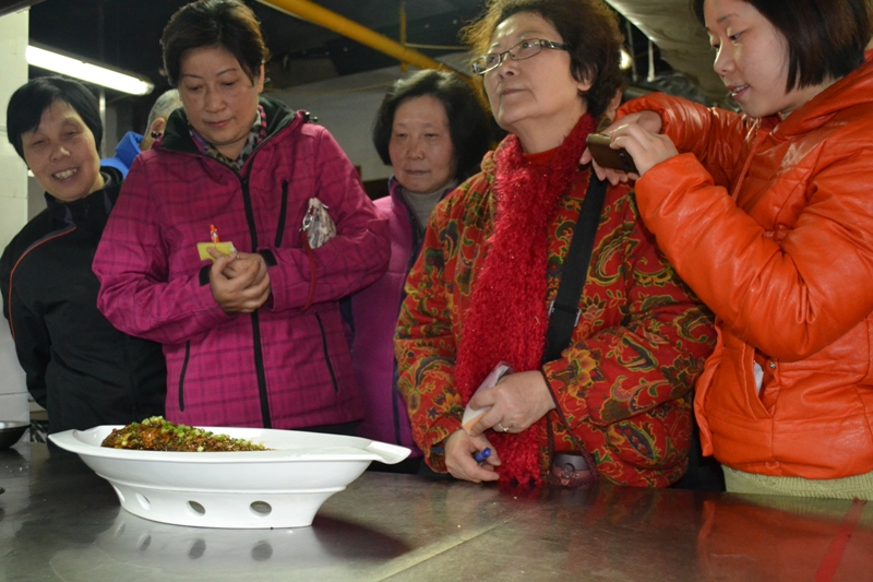 四方阁酒楼厨师长高兴勇教市民做了一道拿手菜—豆瓣鱼,这道菜在2013天府“金辣椒”杯决战天府总决赛荣获了“经典川菜冠军”。高师傅一边做,一边认真的讲解做鱼的步棸,学做菜的市民也认真的做笔记。品尝这道菜之后,市民都噗噗称赞。